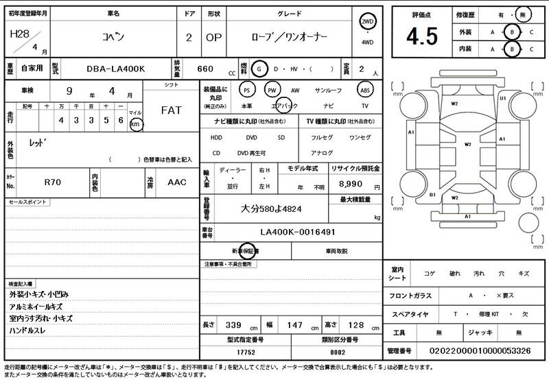 | Model Code: | LA400K | Registration Year: | 2016 |