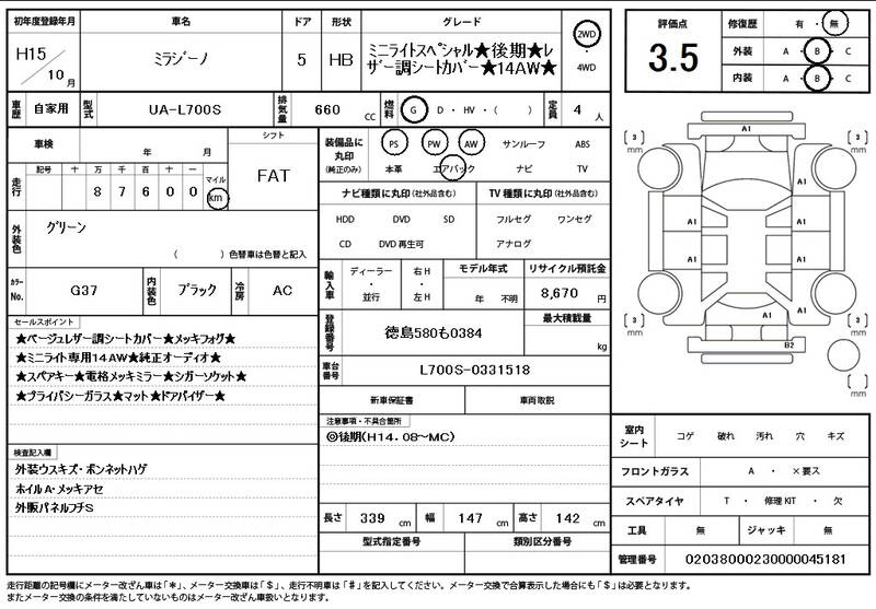 | Engine Capacity: | 660 | Mileage: | 88000 km |