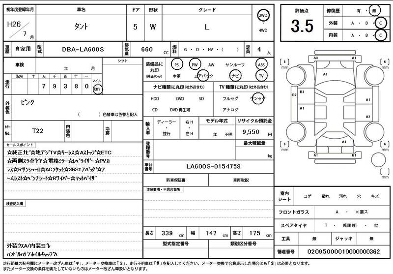 | Model Code: | LA600S | Registration Year: | 2014 |