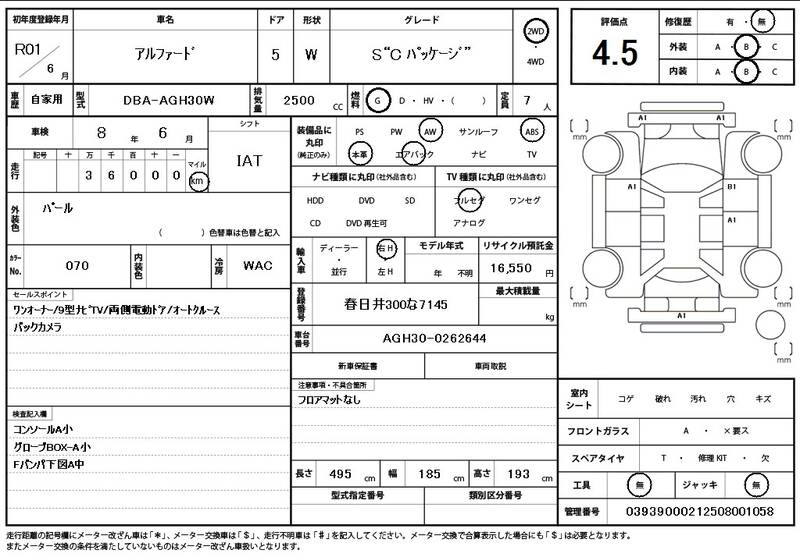 Model Code: AGH30W Registration Year: 2019