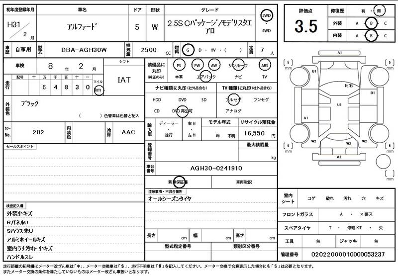 Model Code: AGH30W Registration Year: 2019