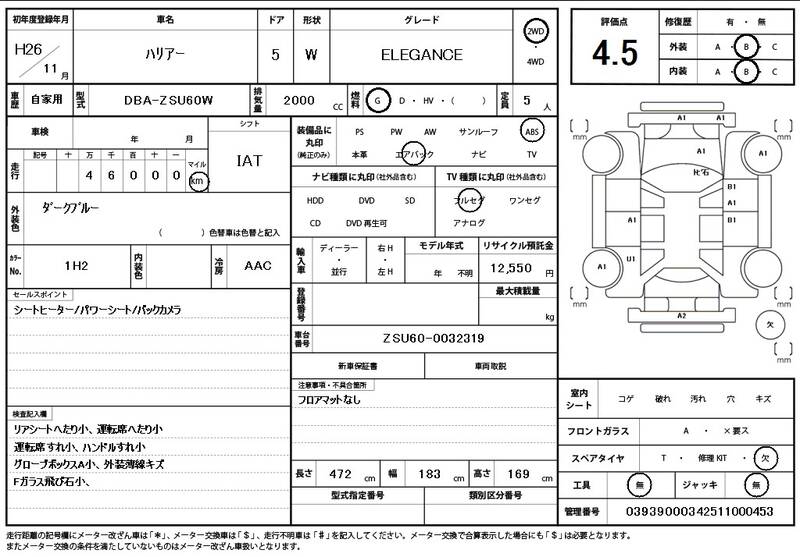 | Model Code: | ZSU60W | Registration Year: | 2014 |
