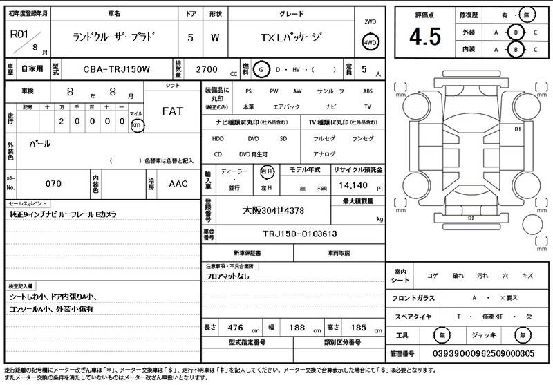 | Model Code: | TRJ150W | Registration Year: | 2019 |