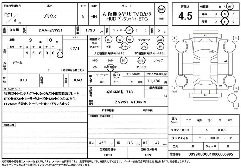 Model Code: ZVW51 Registration Year: 2019