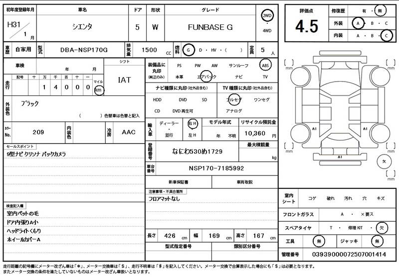 Model Code: NSP170G Registration Year: 2019
