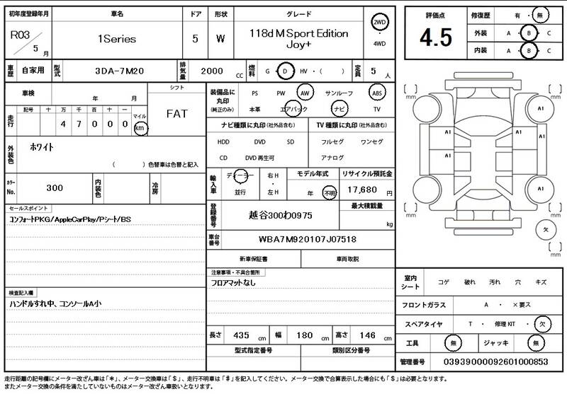 7M20 47000km 2021 WHITE