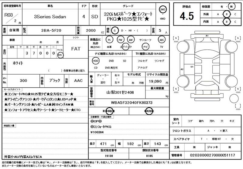 5F20 37,000 km 2021 WHITE