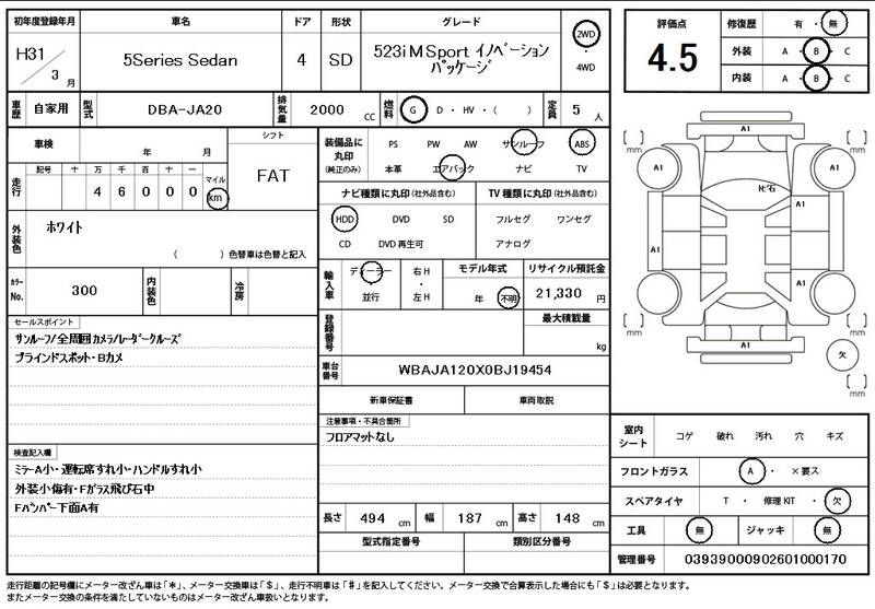 JA20 46,000 km 2019 WHITE