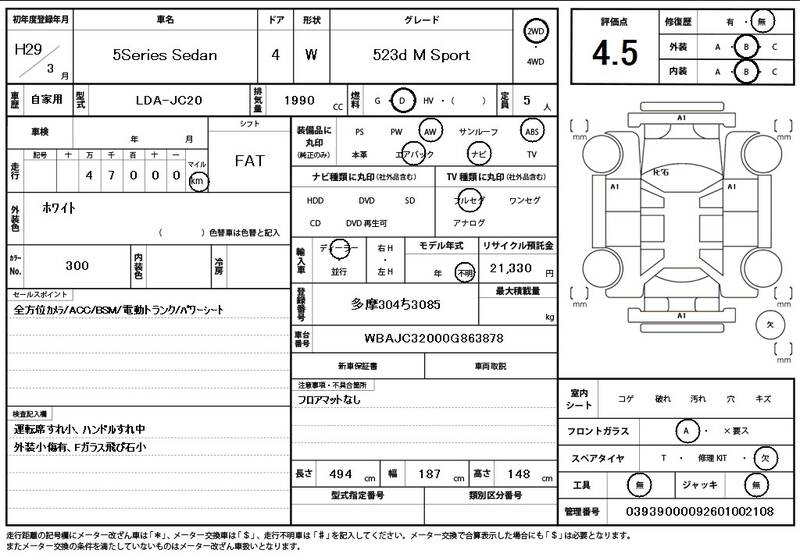 JC20 47,000 km 2017 WHITE