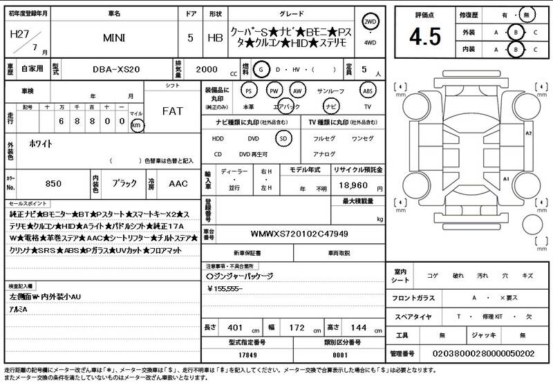 XS20 69,000 km 2015 WHITE