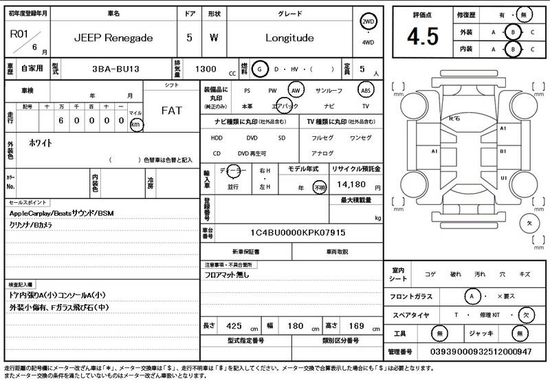 BU13 60,000 km 2019 WHITE