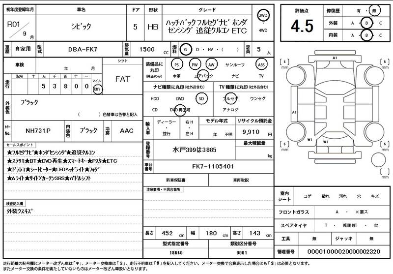 FK7 54,000 km 2019 BLACK