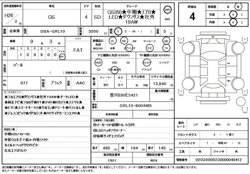 GRL10 110,000 km 2014 WHITE PEARL