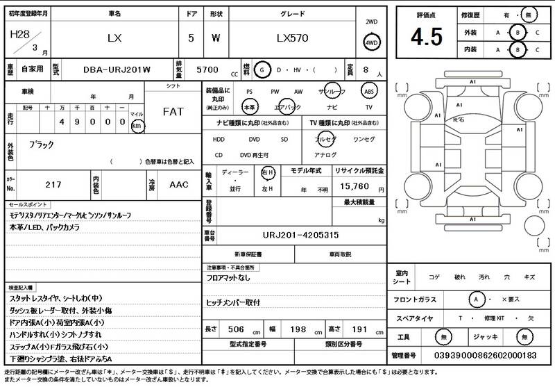 URJ201W 49,000 km 2016 BLACK