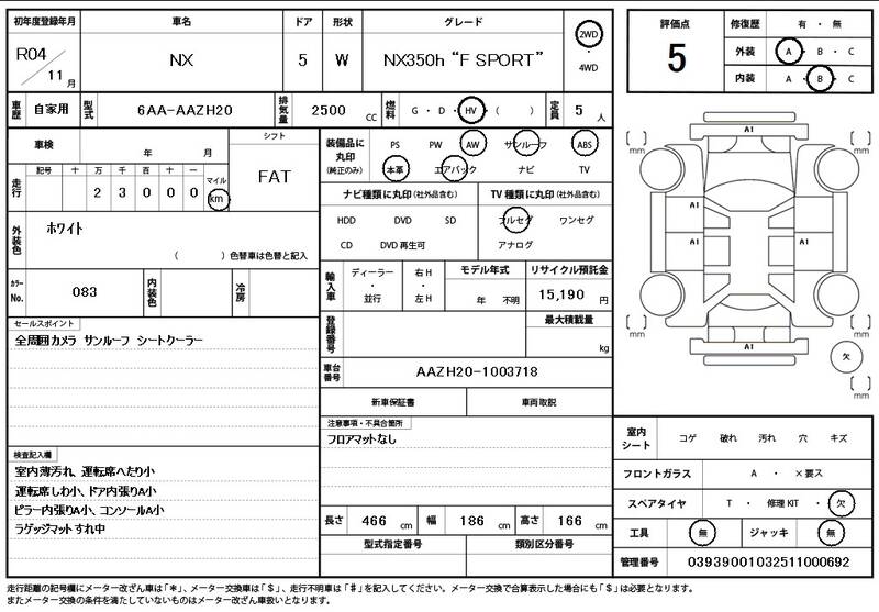 AAZH20 23,000 km 2022 WHITE