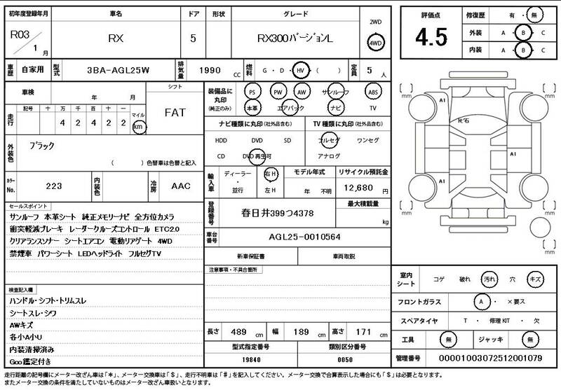 AGL25W 43000km 2021 BLACK