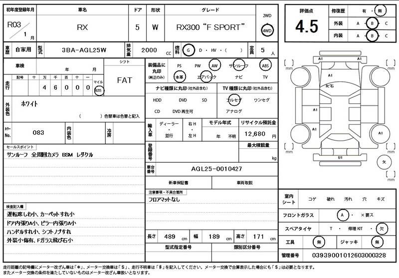 AGL25W 46000km 2021 WHITE