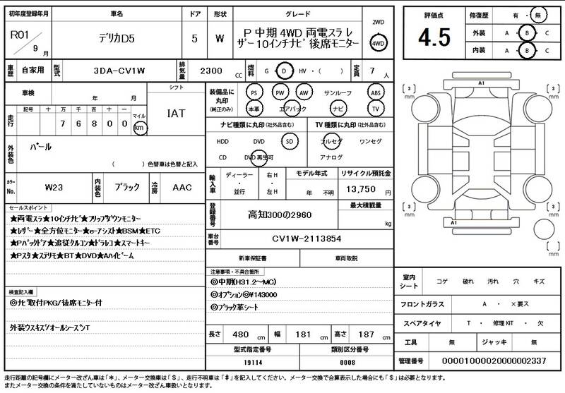 CV1W 77,000 km 2019 WHITE