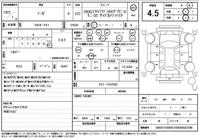 Y51 78,000 km 2010 BRILLIANT SILVER