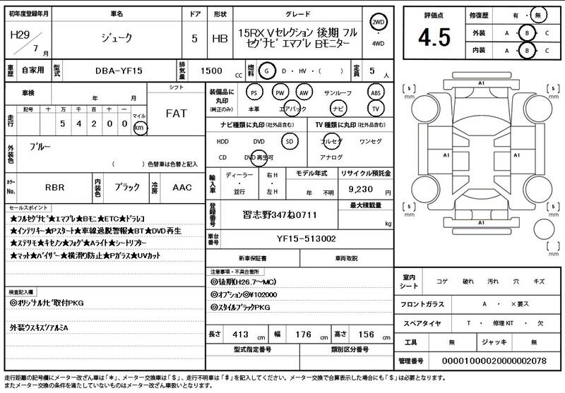 YF15 55,000 km 2017 BLUE