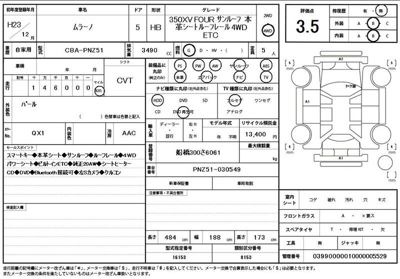 PNZ51 146,000 km 2011 WHITE PEARL
