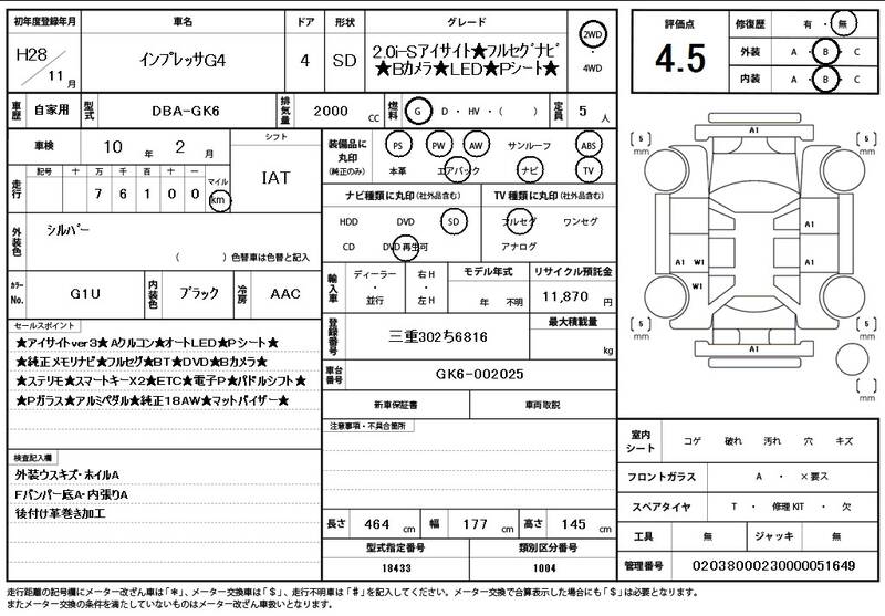GK6 77,000 km 2016 SILVER
