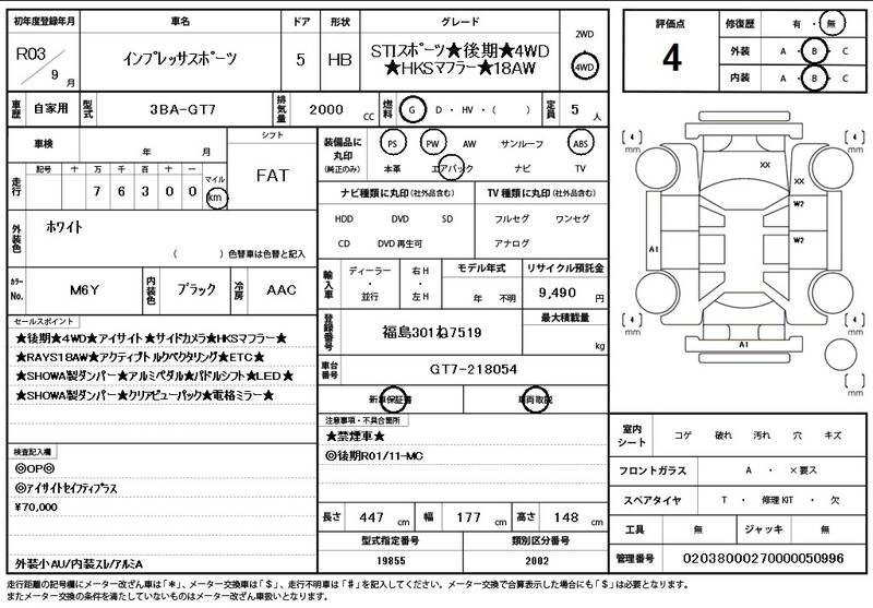 GT7 77,000 km 2021 WHITE
