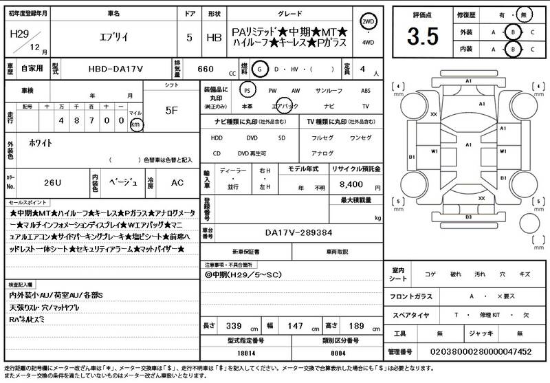 DA17V 49000km 2017 WHITE