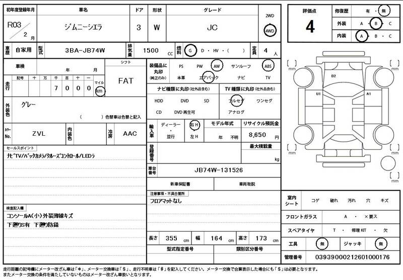 JB74W 7,000 km 2021 GRAY
