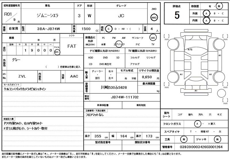 JB74W 19,000 km 2019 GRAY