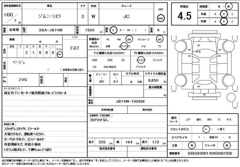 JB74W 21000km 2018 WHITE