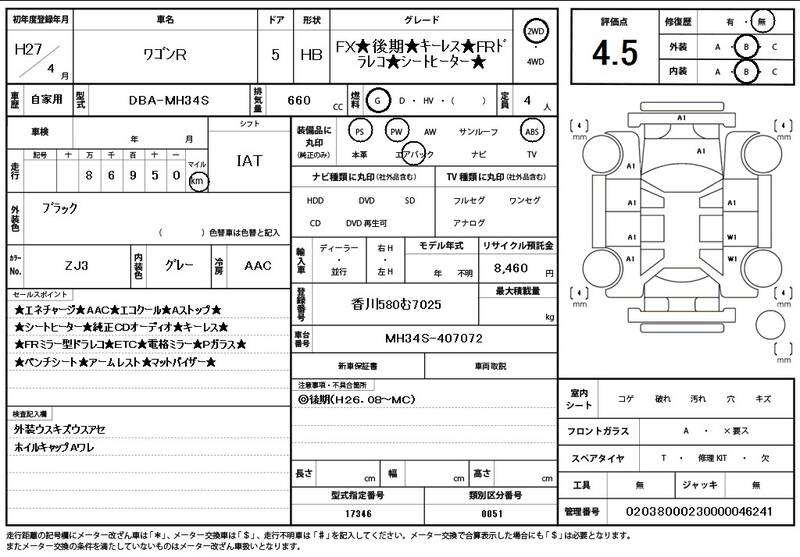 | Model Code: | MH34S | Registration Year: | 2015 |