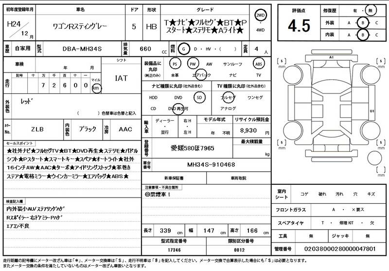 MH34S 73,000 km 2012 RED