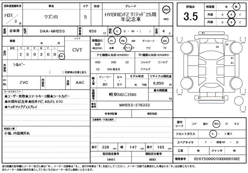 MH55S 201000km 2019 SILVER