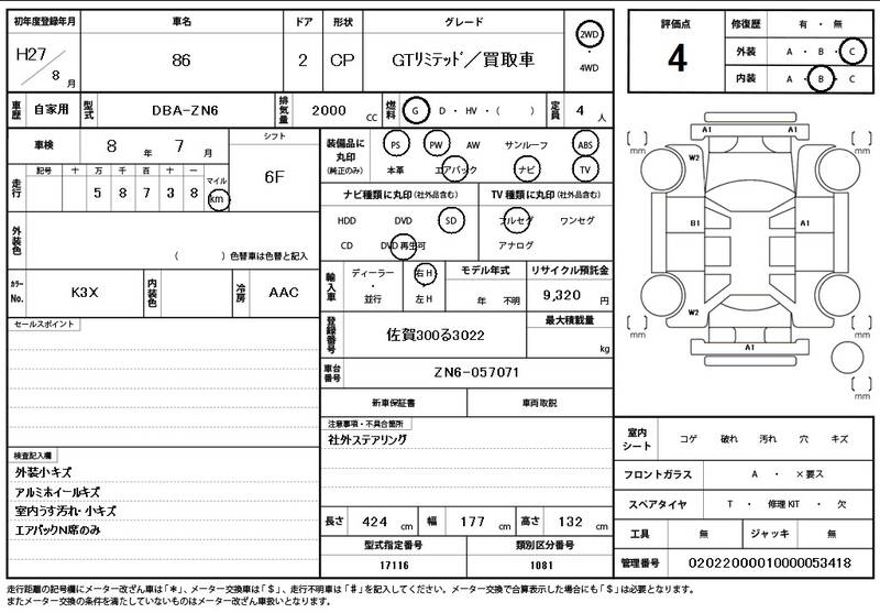 | Model Code: | ZN6 | Registration Year: | 2015 |