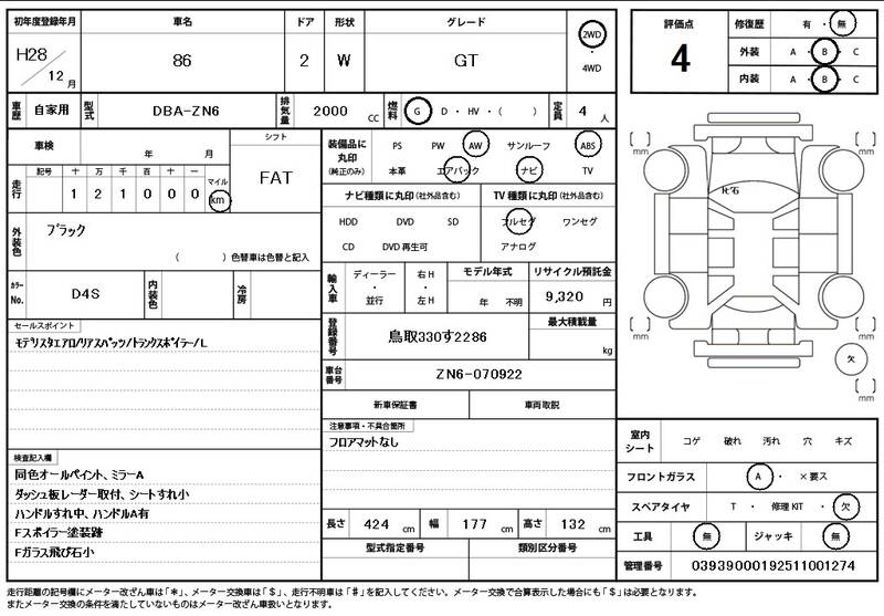 ZN6 121000km 2016 BLACK