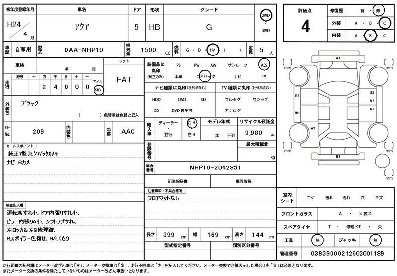 NHP10 24000km 2012 BLACK