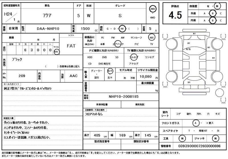NHP10 63000km 2012 BLACK