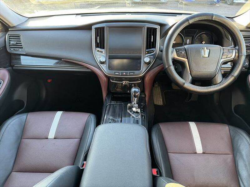 Step inside the Toyota Crown Athlete, and you are immediately greeted by a blend of luxury and comfort. The cabin is spacious, with high-quality materials used throughout, including leather upholstery and soft-touch surfaces. The front seats are power-adjustable and offer ample support, making long drives comfortable. The dashboard is clean and modern, featuring a large touchscreen display that controls the infotainment system. The interior also boasts advanced features like a premium sound system, climate control, and numerous safety technologies. The rear seats provide a comfortable ride for passengers, with enough legroom and support for extended journeys.