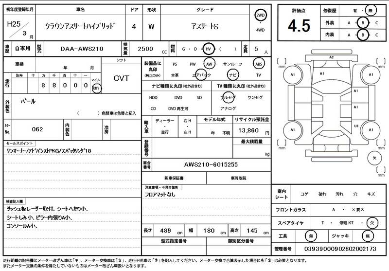 AWS210 88000km 2013 PEARL