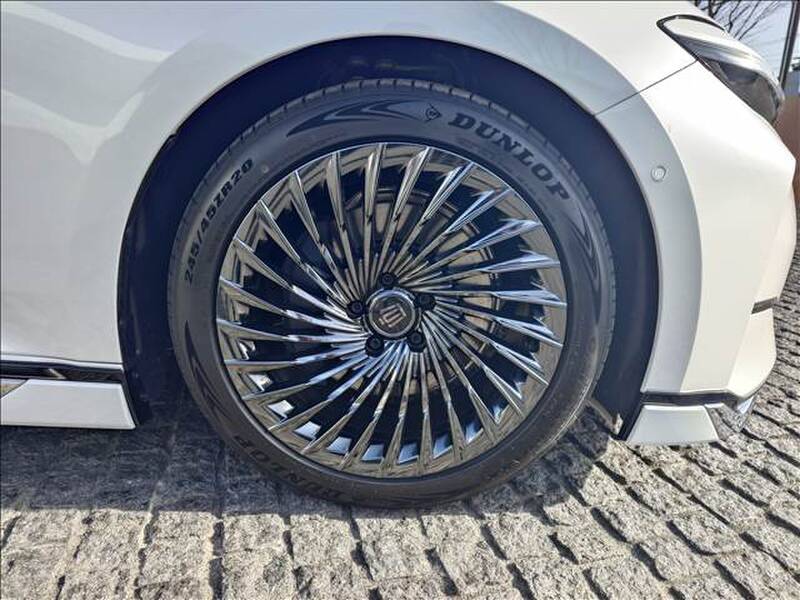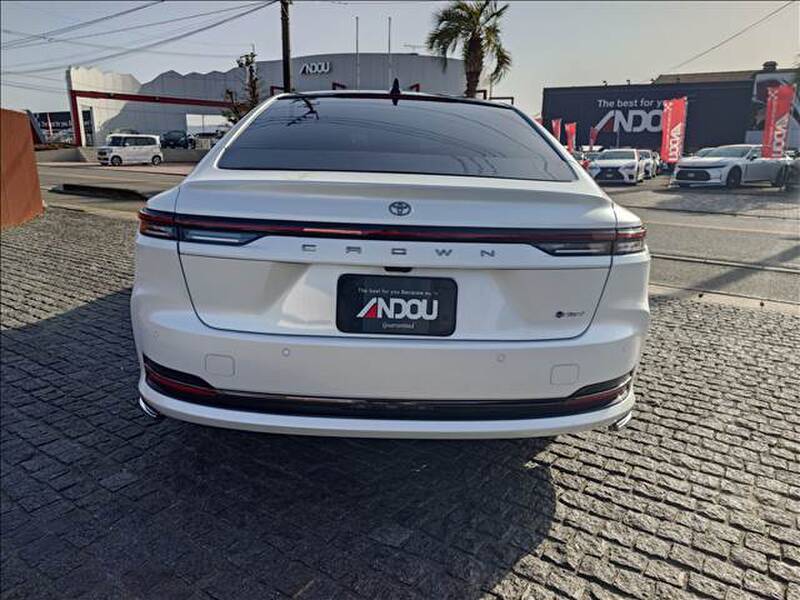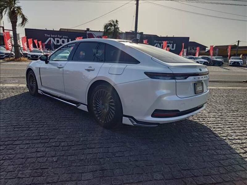 Toyota Crown is a luxury sedan that combines style, comfort, and advanced technology in a way that appeals to discerning drivers. It boasts a sleek, elegant exterior with smooth lines and a refined presence on the road. The front end features a bold grille design, complemented by sharp LED headlights, giving it a sophisticated yet powerful look. Its side profile is characterized by a fluid design with a long wheelbase that contributes to its premium feel. The rear of the Crown is just as striking, with angular tail lights and a polished bumper that adds to its overall sophistication. The vehicle sits on large, stylish wheels, further enhancing its modern appearance.