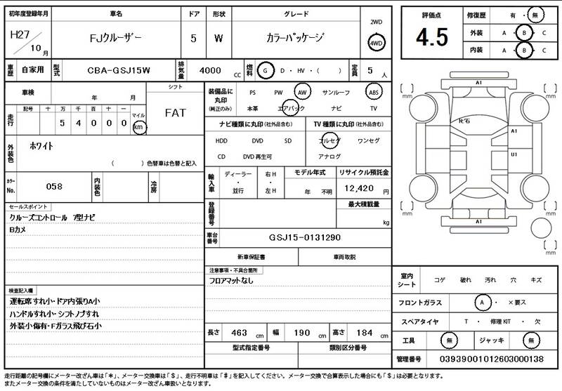 GSJ15W 54000km 2015 WHITE