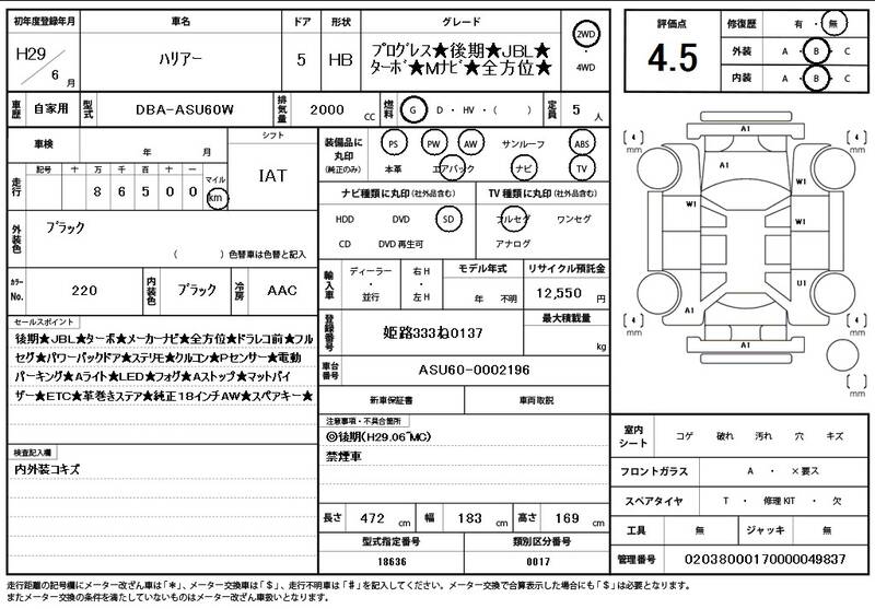 ASU60W 87,000 km 2017 BLACK