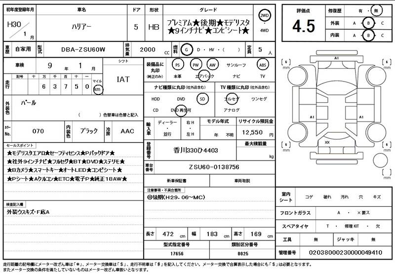 ZSU60W 64000km 2018 PEARL