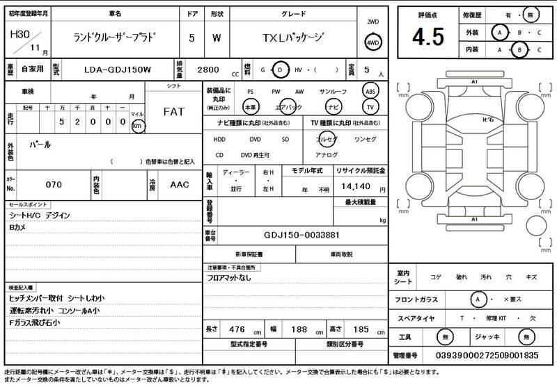 | Model Code: | GDJ150W | Registration Year: | 2018 |