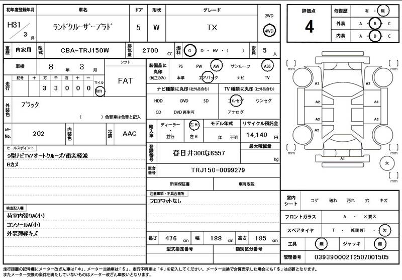 Model Code: | TRJ150W | Registration Year: | 2019 |
