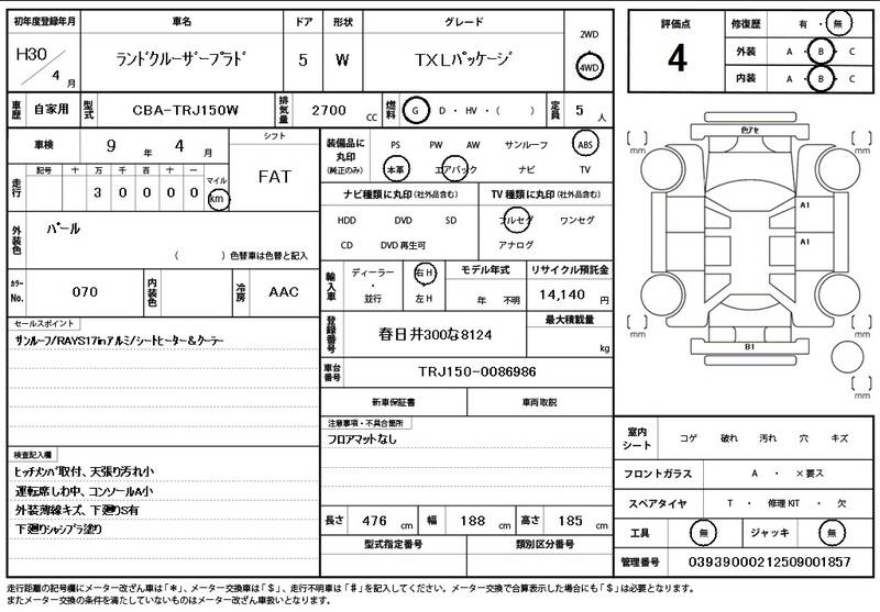 | Model Code: | TRJ150W | Registration Year: | 2018 |
