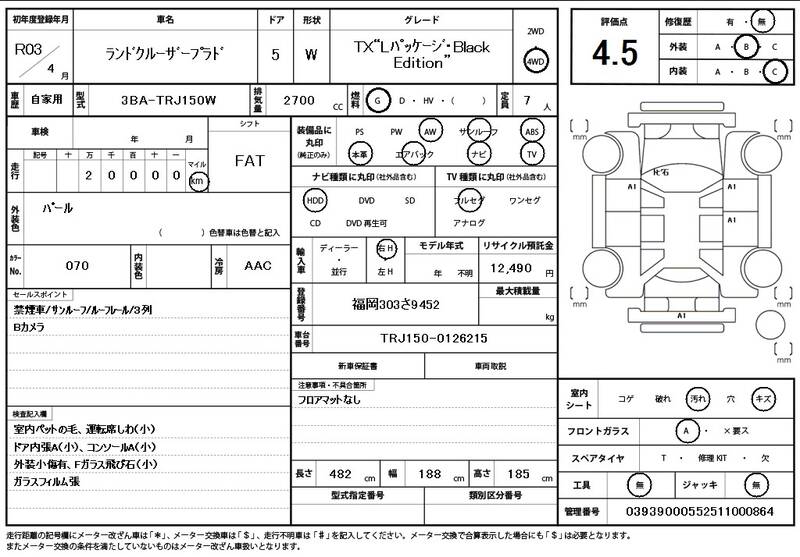 | Model Code: | TRJ150W | Registration Year: | 2021 |