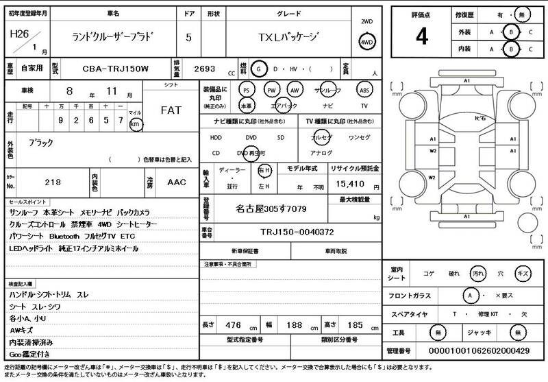 TRJ150W 93,000 km 2014 BLACK