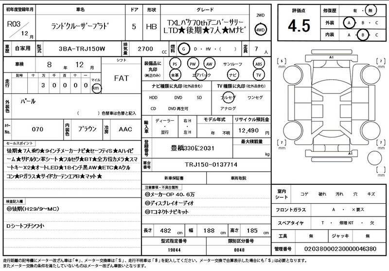 | Model Code: | TRJ150W | Registration Year: | 2021 |